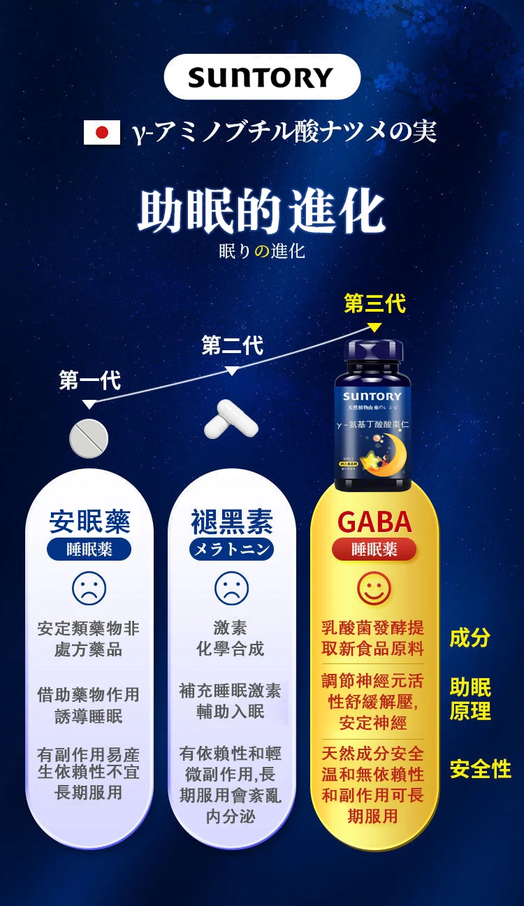 半小時前【三利suntory健康好眠得】日本製 天然植物エキス γ-氨基丁酸酸棗仁片 食品級原料 0蔗糖 0激素 0負擔 每天睡眠香 精神足 皮膚潤 記憶好 - 【緩解失眠問題】1入組體驗NT$980