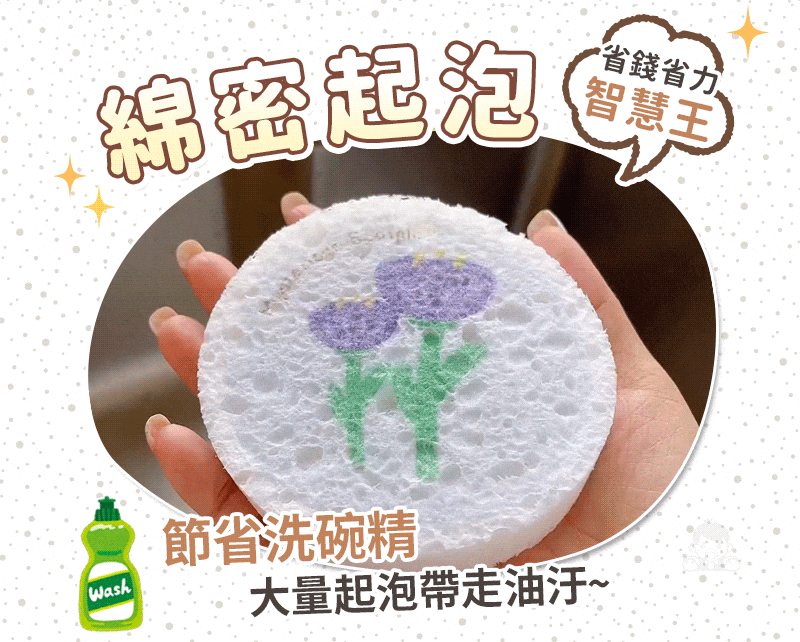 2分鐘前木漿海綿擦/碗洗得更乾淨又健康✨用過都說回不去 - 【家庭優惠:15入組】花朵木漿海綿擦NT$799