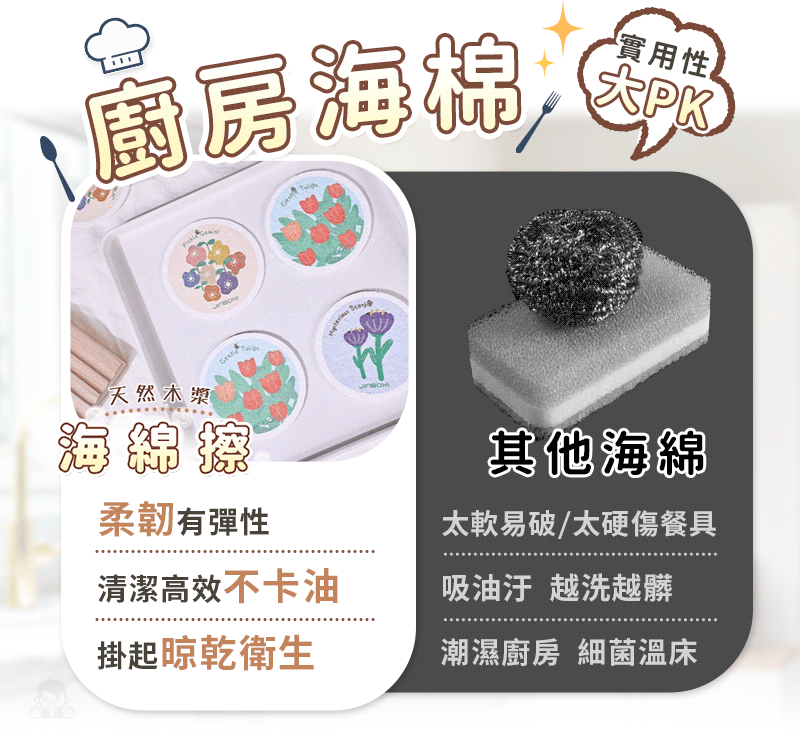 4分鐘前木漿海綿擦/碗洗得更乾淨又健康✨用過都說回不去 - 【破盤殺價:20入組】花朵木漿海綿擦NT$999