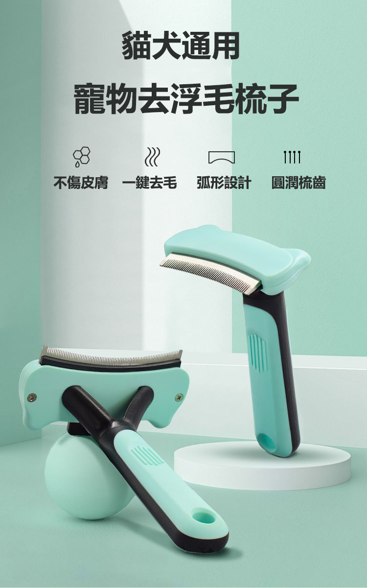 2分鐘前 貓犬通用 寵物祛浮毛梳子 不傷皮膚 一鍵去毛 弧形設計 圓潤梳齒 - 【嘗鮮價】2入組-NT$998 均價499/入