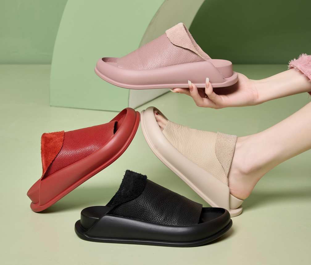 4分鐘前新款復古軟皮純色外穿休閒軟底厚底拖鞋 - 促銷 【今日限定】1入組$999